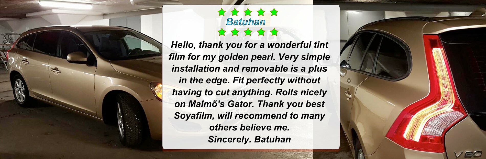 SOYAFILM® - Supereasy tint for your carOrder super simple solar film for VOLVOWinter sale 30-70%! until 2025-12-07from 271 NOK(Ordinary price: 388 NOK)